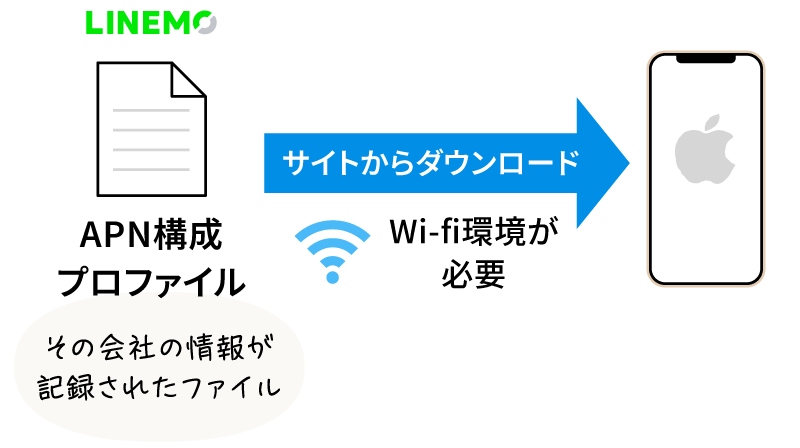 SIMカードを挿せば自動で設定されることが多いですが、されない場合は、「APN構成プロファイル」というものを各社のサイトからダウンロードして、スマホにインストールする必要があります。