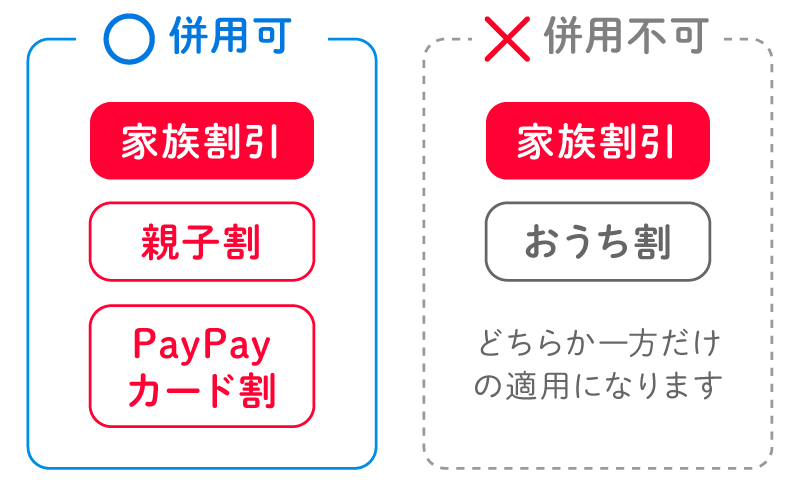 このうち、家族割引サービスと併用できないのは「おうち割」のみです。