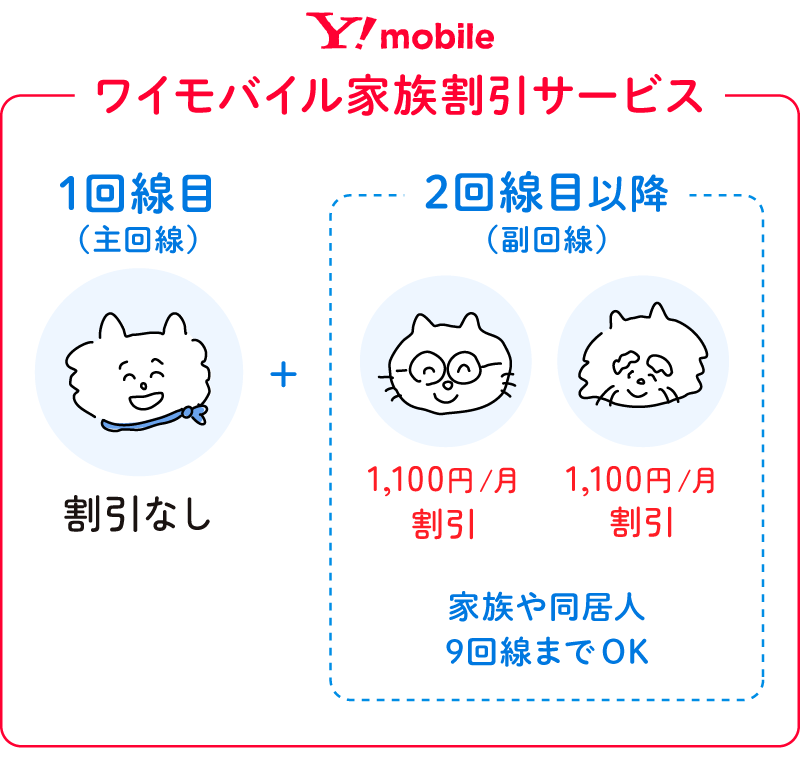 家族や同居人であれば、2回線目以降の基本使用料が1,100円割引。